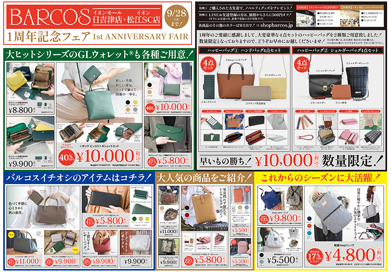 9/20(土)~9/28(日)の9日間、イオンモール日吉津店、イオンSC松江店限定で1周年記念フェア開催!